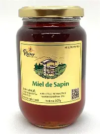 Plus rare et plus sombre, le miel de sapin se distingue par ses notes boisées et sa texture onctueuse. Riche en minéraux, il est souvent recherché pour ses propriétés tonifiantes et son goût puissant, typique des forêts de montagne.